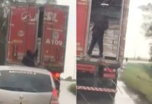 Flagrante: ladrão furta caminhão em movimento
